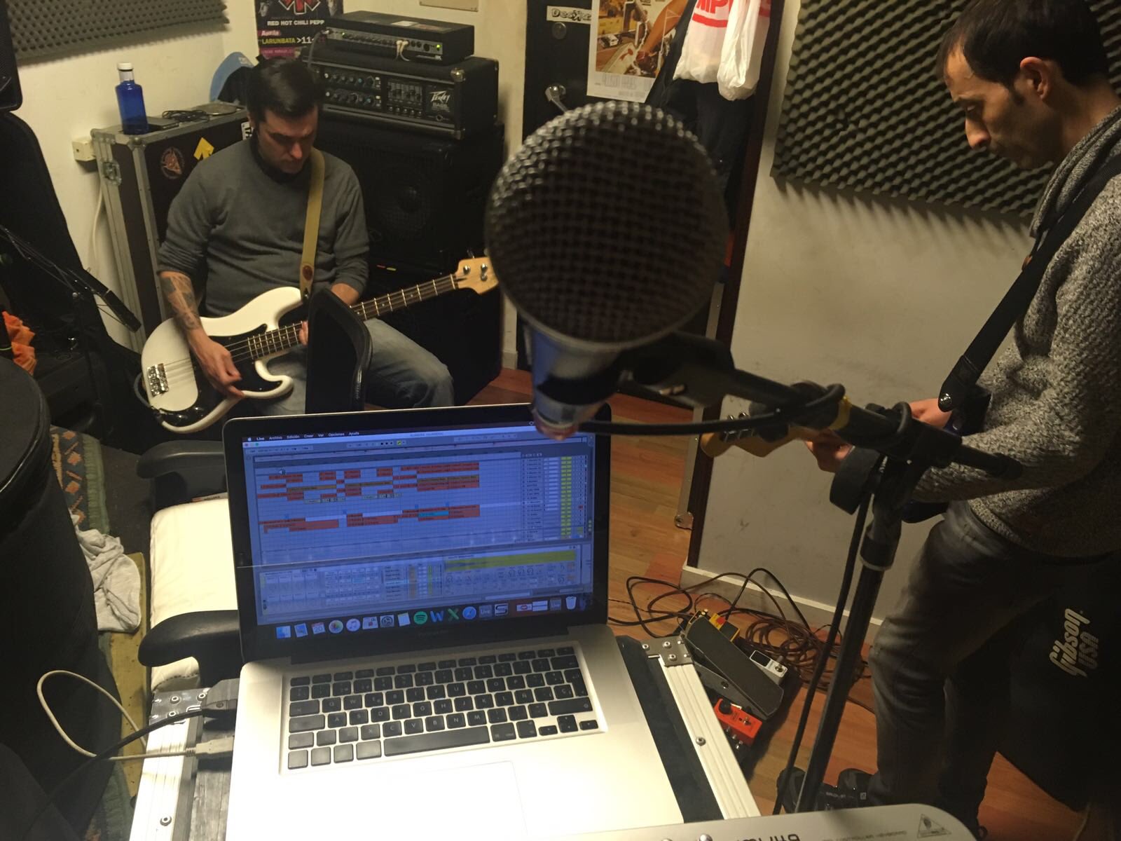 Estamos preparando la grabación de una canción en directo.